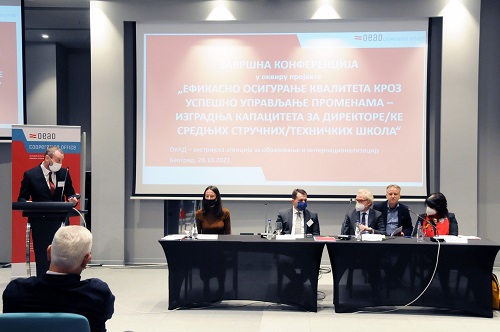 U Beogradu je u organizaciji Obrazovnog foruma 28. oktobra 2021. godine u hotelu MONA PLAZA održana finalna konferencija regionalnog projekta OeAD-a Austrija, EFIKASNO OSIGURANJE KVALITETA KROZ USPEŠNO UPRAVLJANJE PROMENAMA- IZGRADNJA KAPACITETA ZA DIREKTORE/KE SREDNJIH STRUČNIH/TEHNIČKIH ŠKOLA.